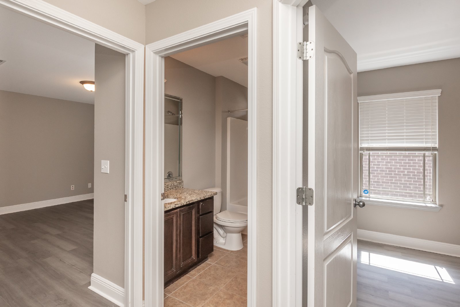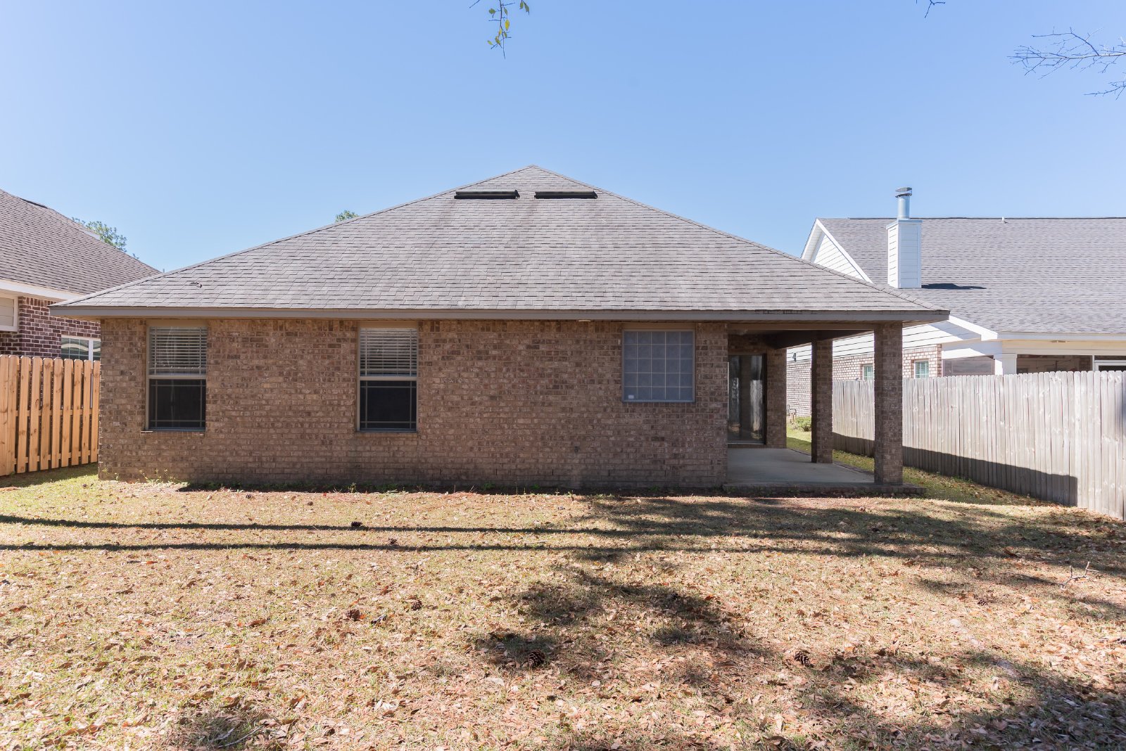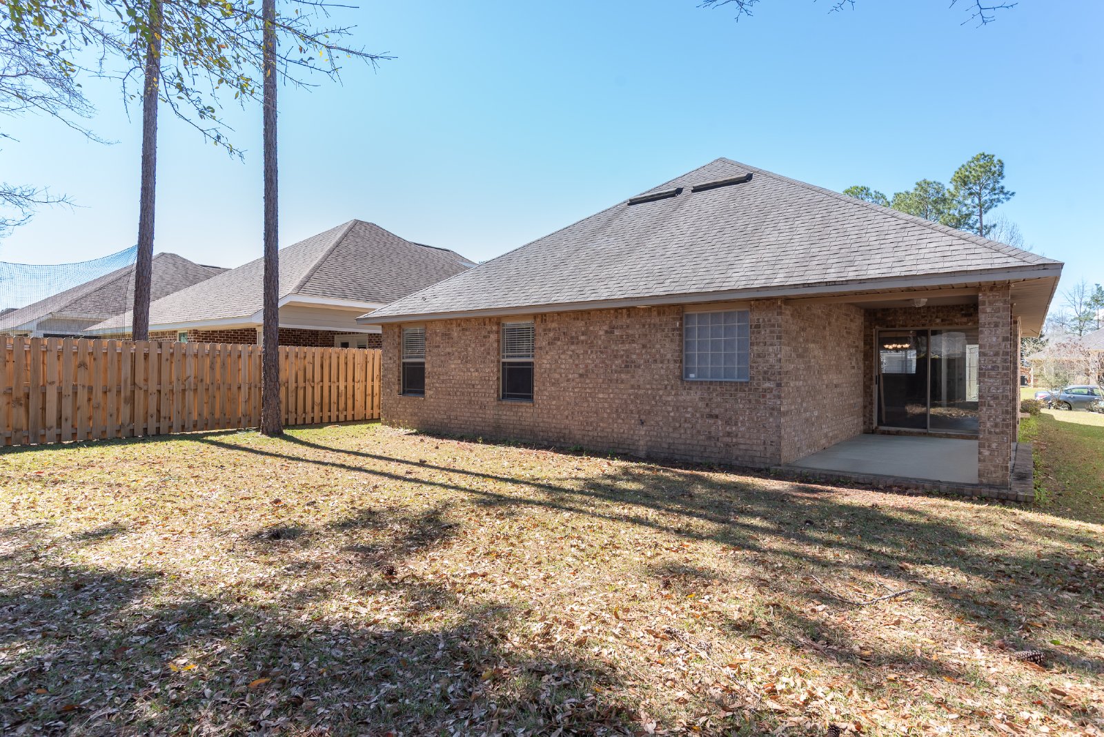 Nestled in a secure, gated community, this beautiful brick home offers an exceptional blend of comfort and style. Featuring three spacious bedrooms and two full bathrooms, this residence has been freshly painted, presenting a move-in-ready appeal. The heart of the home is the gourmet kitchen, boasting custom cabinetry, stunning granite countertops, and a convenient pantry for ample storage. Entertain with ease in the formal dining room, or enjoy casual meals at the breakfast bar. Retreat to the luxurious master bath, complete with a relaxing garden tub, separate shower, double vanity, and elegant granite countertops. This home is brimming with desirable features, including recessed lighting, an inside laundry room for added convenience, cooling ceiling fans, and stylish trey ceilings. Stay comfortable year-round with central heat and air conditioning. Step outside to enjoy the covered patio, perfect for outdoor relaxation, and a convenient two-car garage. The gated community offers a Pavilion/Gazebo, a Picnic Area, and underground utilities for a clean aesthetic. **Please note: NO PETS are allowed in this property.** This meticulously maintained home is ready to welcome you! There is a $250 Move-In Fee Per Address and a $50 Lease Signing Fee Per Tenant