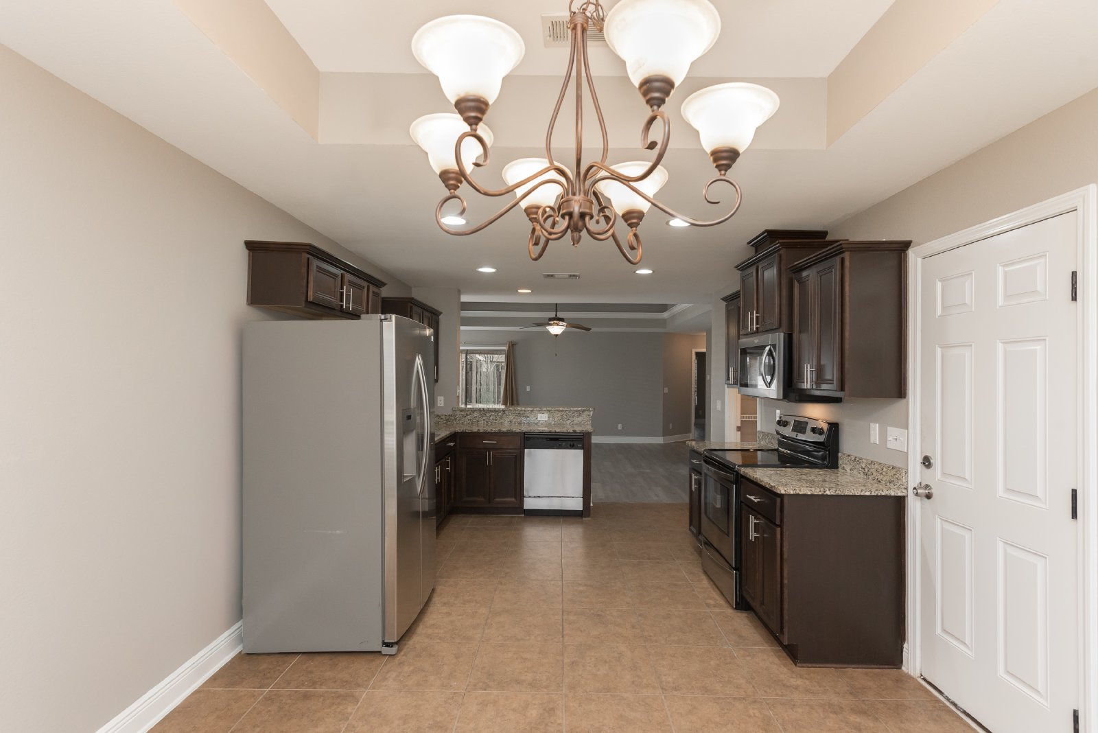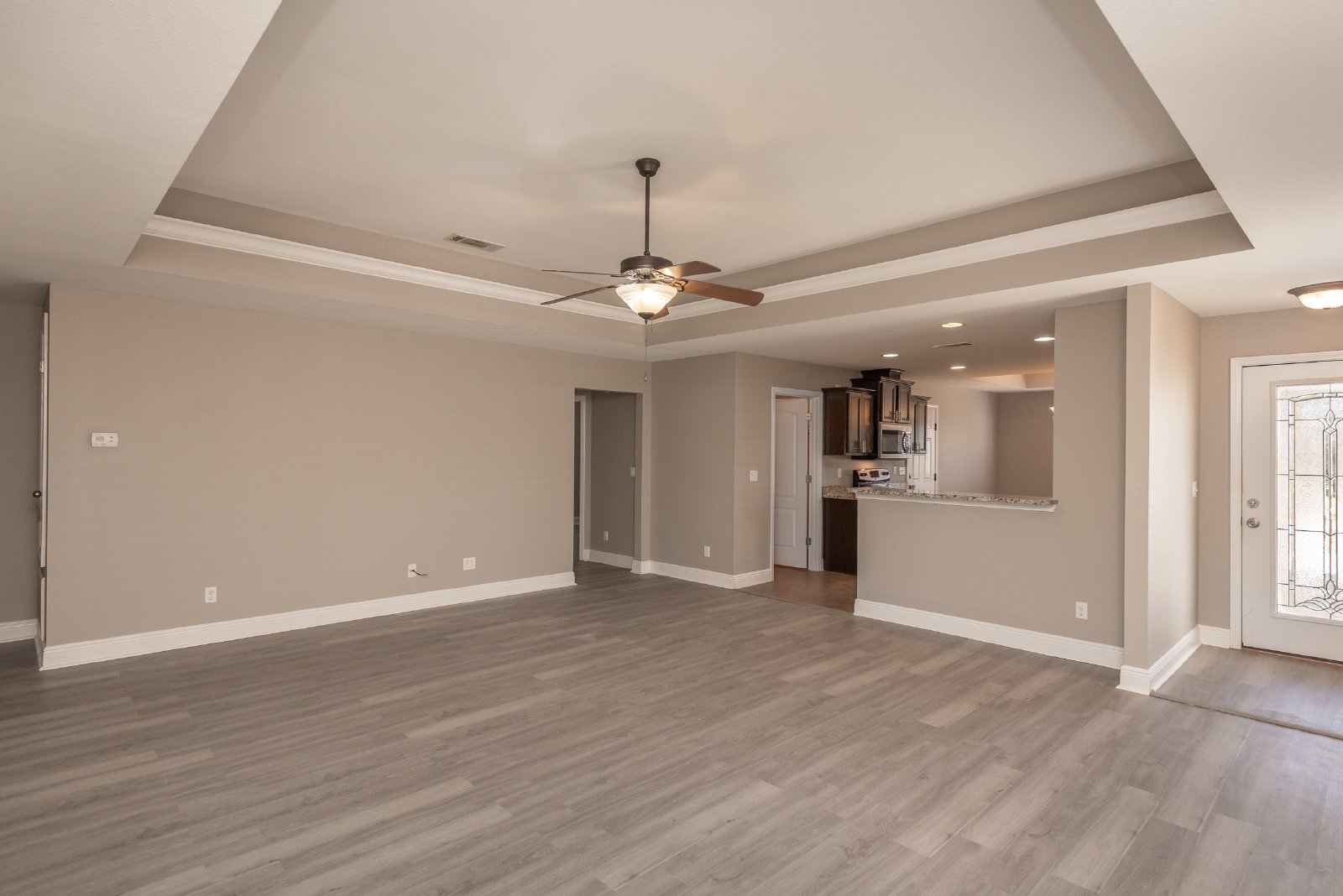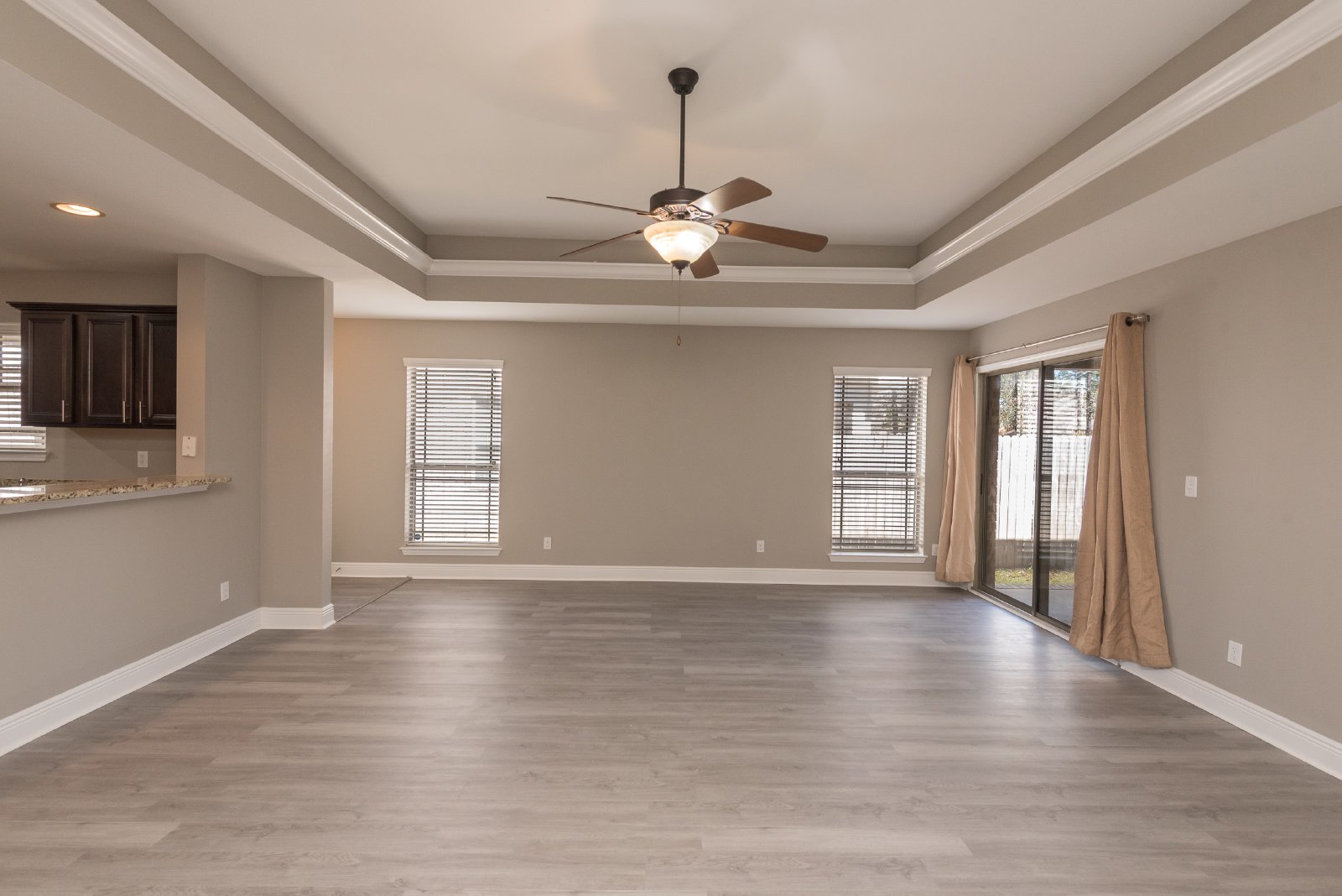 Nestled in a secure, gated community, this beautiful brick home offers an exceptional blend of comfort and style. Featuring three spacious bedrooms and two full bathrooms, this residence has been freshly painted, presenting a move-in-ready appeal. The heart of the home is the gourmet kitchen, boasting custom cabinetry, stunning granite countertops, and a convenient pantry for ample storage. Entertain with ease in the formal dining room, or enjoy casual meals at the breakfast bar. Retreat to the luxurious master bath, complete with a relaxing garden tub, separate shower, double vanity, and elegant granite countertops. This home is brimming with desirable features, including recessed lighting, an inside laundry room for added convenience, cooling ceiling fans, and stylish trey ceilings. Stay comfortable year-round with central heat and air conditioning. Step outside to enjoy the covered patio, perfect for outdoor relaxation, and a convenient two-car garage. The gated community offers a Pavilion/Gazebo, a Picnic Area, and underground utilities for a clean aesthetic. **Please note: NO PETS are allowed in this property.** This meticulously maintained home is ready to welcome you! There is a $250 Move-In Fee Per Address and a $50 Lease Signing Fee Per Tenant