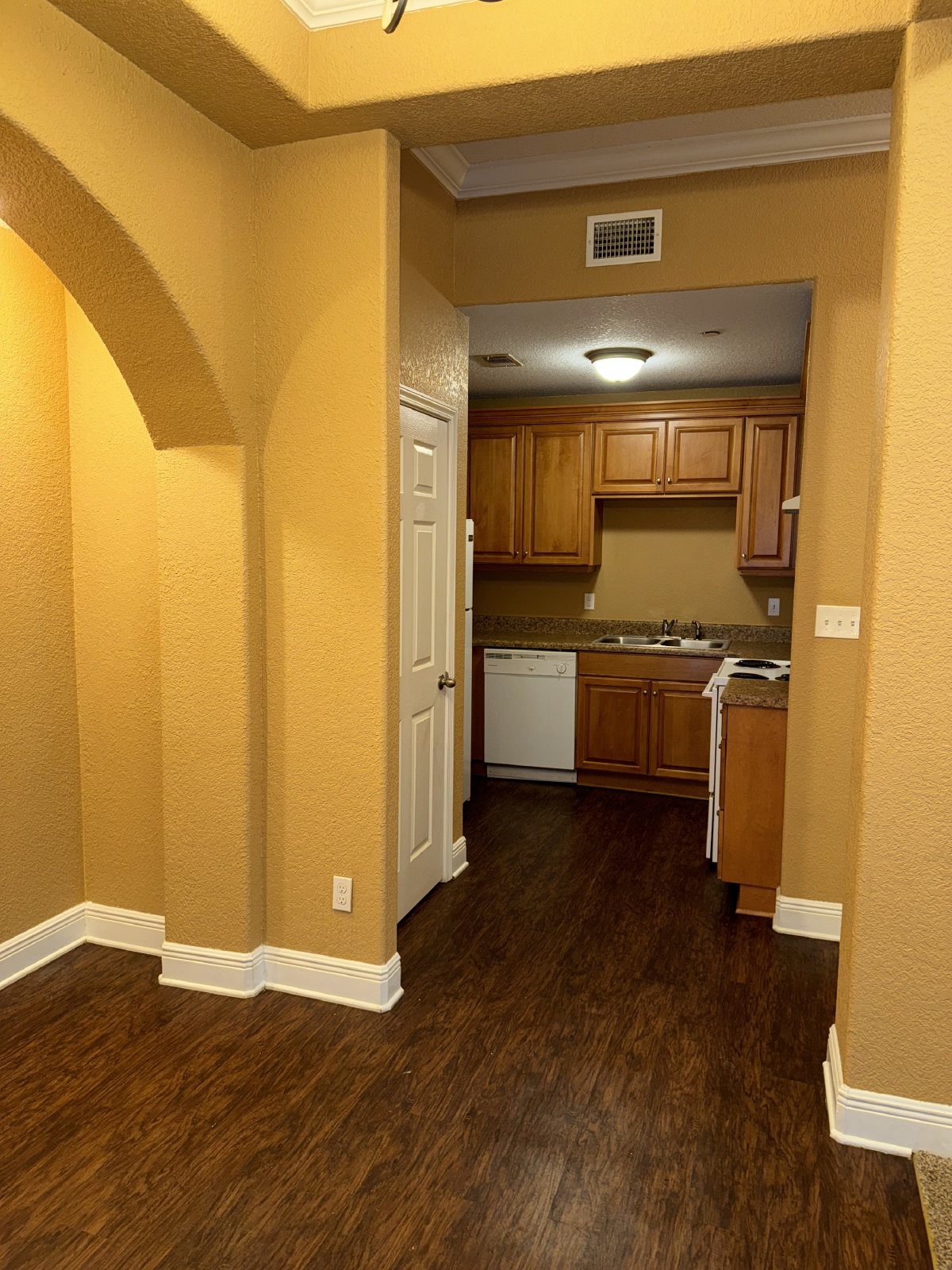 Indulge in modern living at this stunning three-bedroom apartment, boasting two full baths and an expansive open floor plan. Soaring nine-foot ceilings accentuate the contemporary design and flow effortlessly into a spacious living area. The gourmet kitchen features sleek appliances including a refrigerator, dishwasher, and stove. Enjoy the convenience of an in-unit laundry room with washer and dryer connections. Water, garbage, and sewer are all included in the rent! Please note, this is a pet-free community."