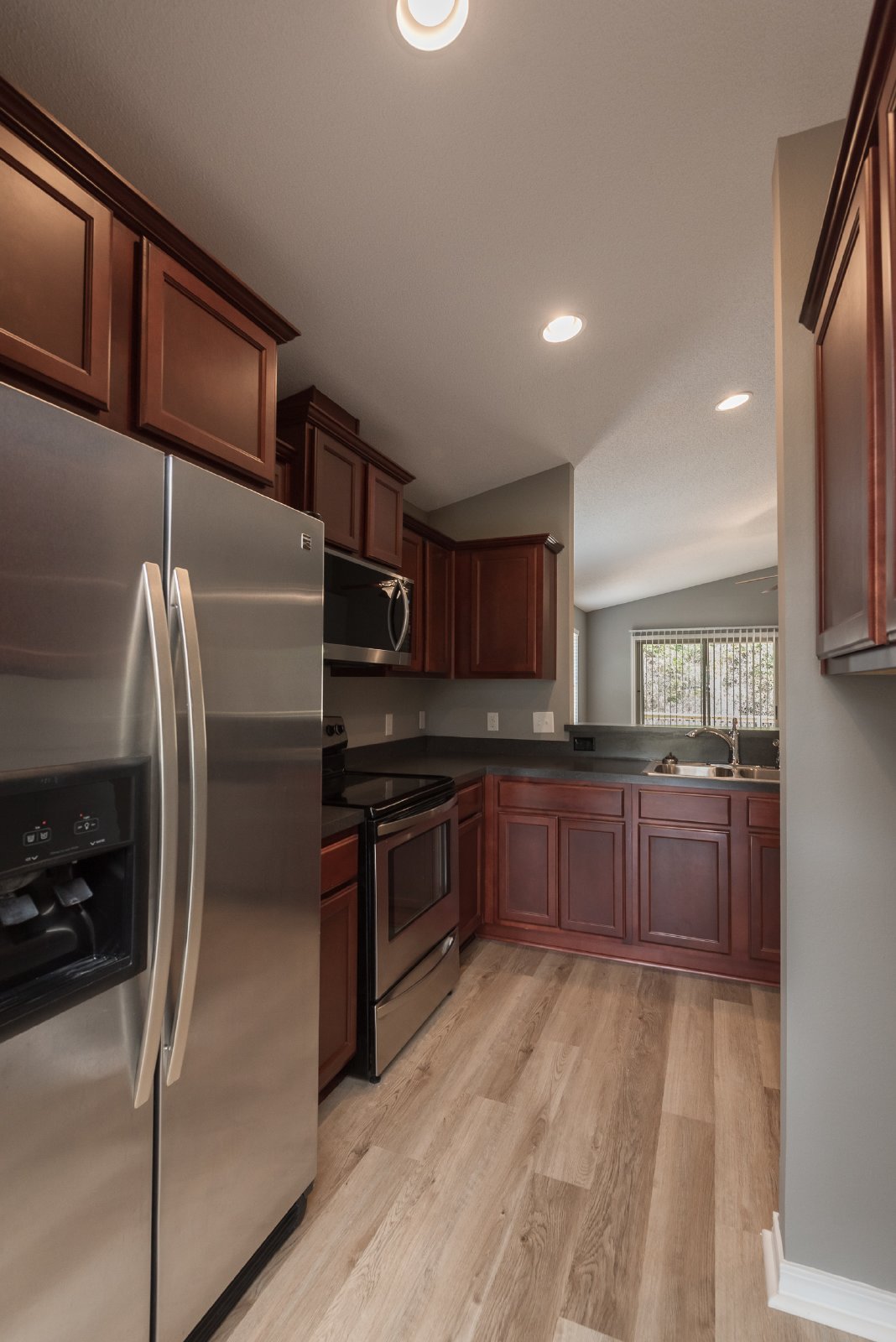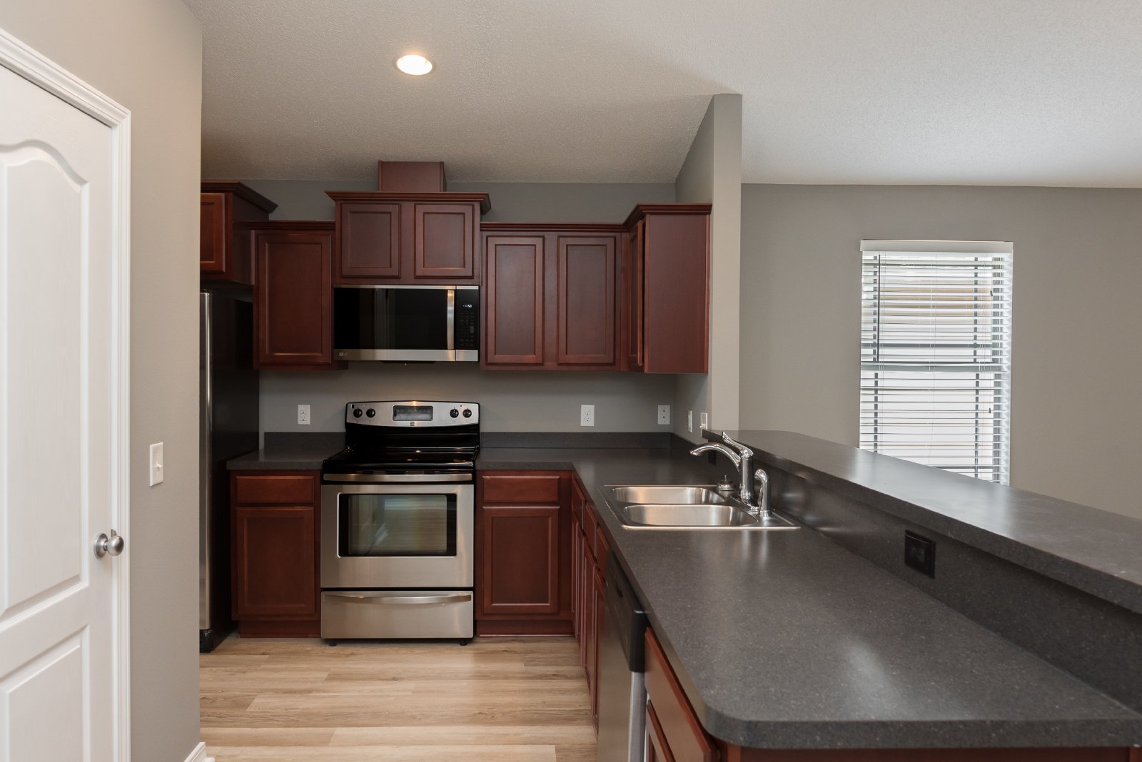 "Welcome to your new home! This charming brick residence offers 3 bedrooms, 2 full bathrooms, and a wealth of desirable features. The inviting foyer leads to a functional layout, with a dining room to one side and a spacious laundry room (offering garage access) to the other. The kitchen is a true highlight, boasting stainless steel appliances, beautiful stained cabinets, a butler's pantry, a walk-in pantry, and a convenient bar overlooking the family room. The master suite provides a relaxing escape, complete with a large walk-in closet and a master bath with double vanities, a garden tub, a separate shower, and a linen closet. Two additional bedrooms share a well-appointed full bathroom. Enjoy outdoor living with a two-car garage, a fenced backyard, and an oversized deck and patio. **Lawn service is included in the rent!** Pets are welcome with owner approval (2 max). Schedule your showing today!"