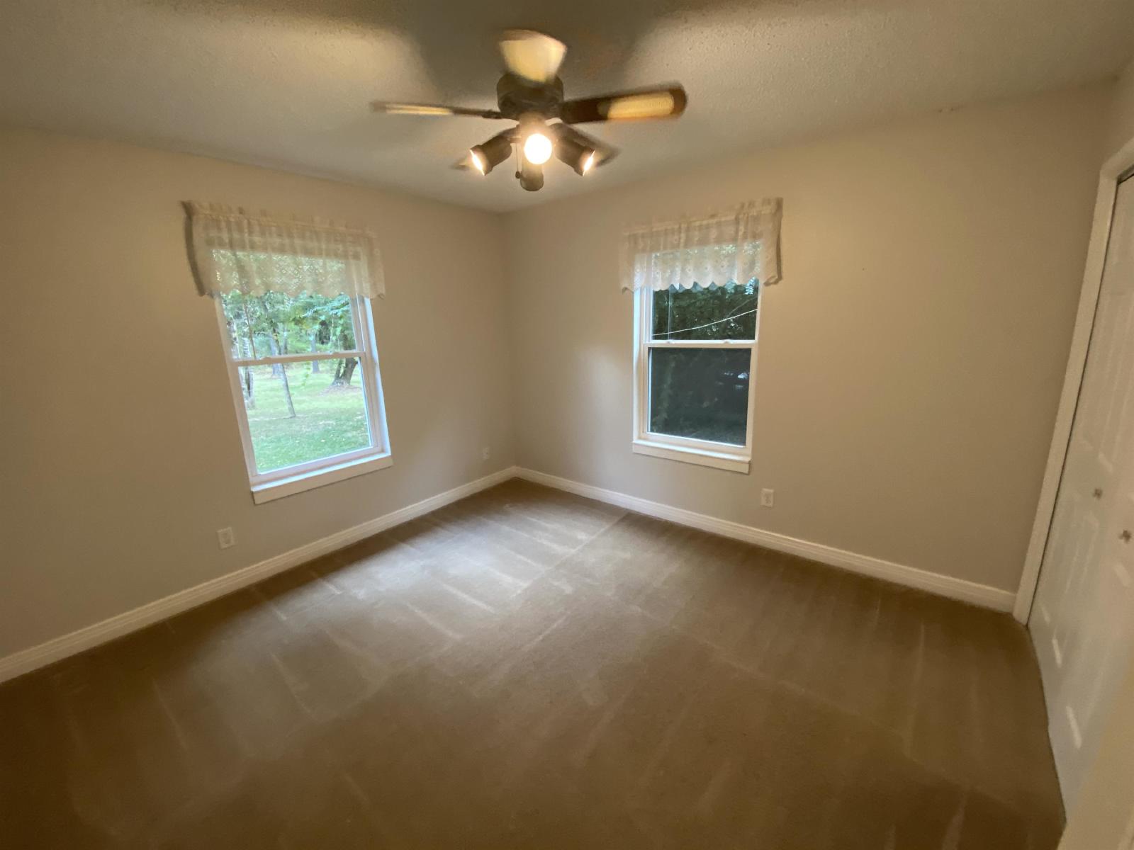 Air conditioner, Carpet, Ceiling fan, Dryer, Garage parking, Heat, Laundry hookup, Pet friendly, Stove and oven, View, Walk-in closets, Washer