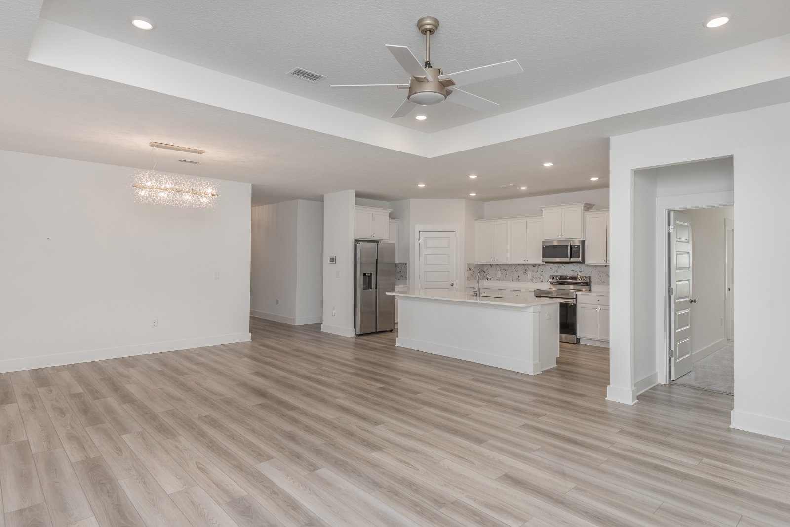 This stunning single-family home features 4 bedrooms and 3 bathrooms across a spacious open floor plan that flows over more than 1,900 square feet. The upgraded kitchen is a chef's dream, showcasing quartz countertops, sleek white cabinets, a pantry, stainless steel appliances, and a breakfast bar that overlooks the expansive living area—perfect for entertaining or family gatherings.