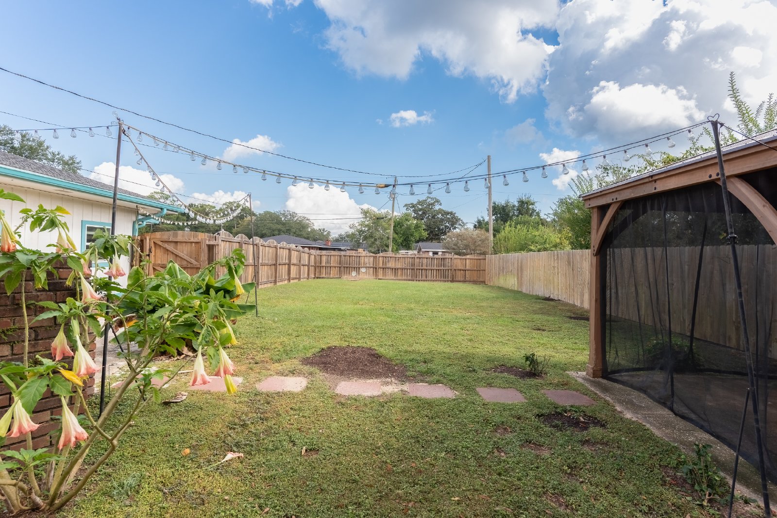 Step outside to a large fenced backyard featuring an open patio and a detached, screened gazebo-style area, perfect for outdoor dining or relaxing while avoiding mosquitos!