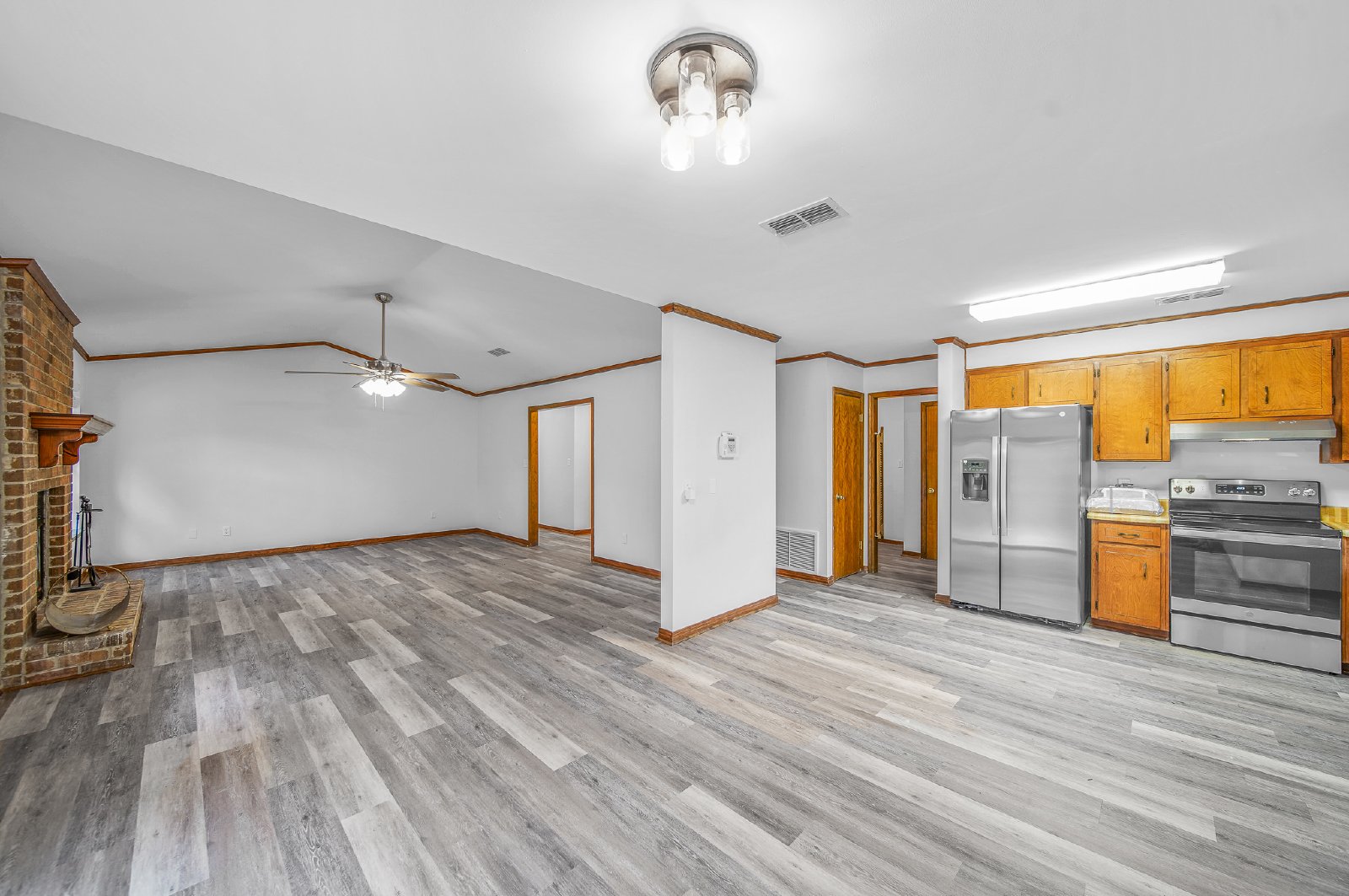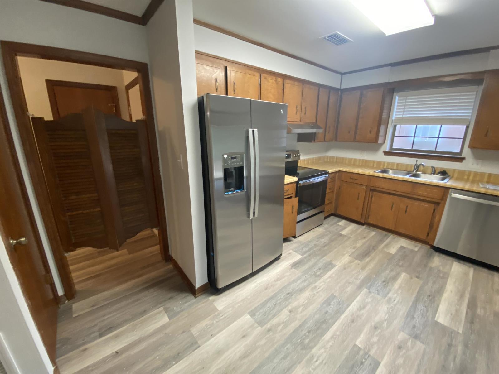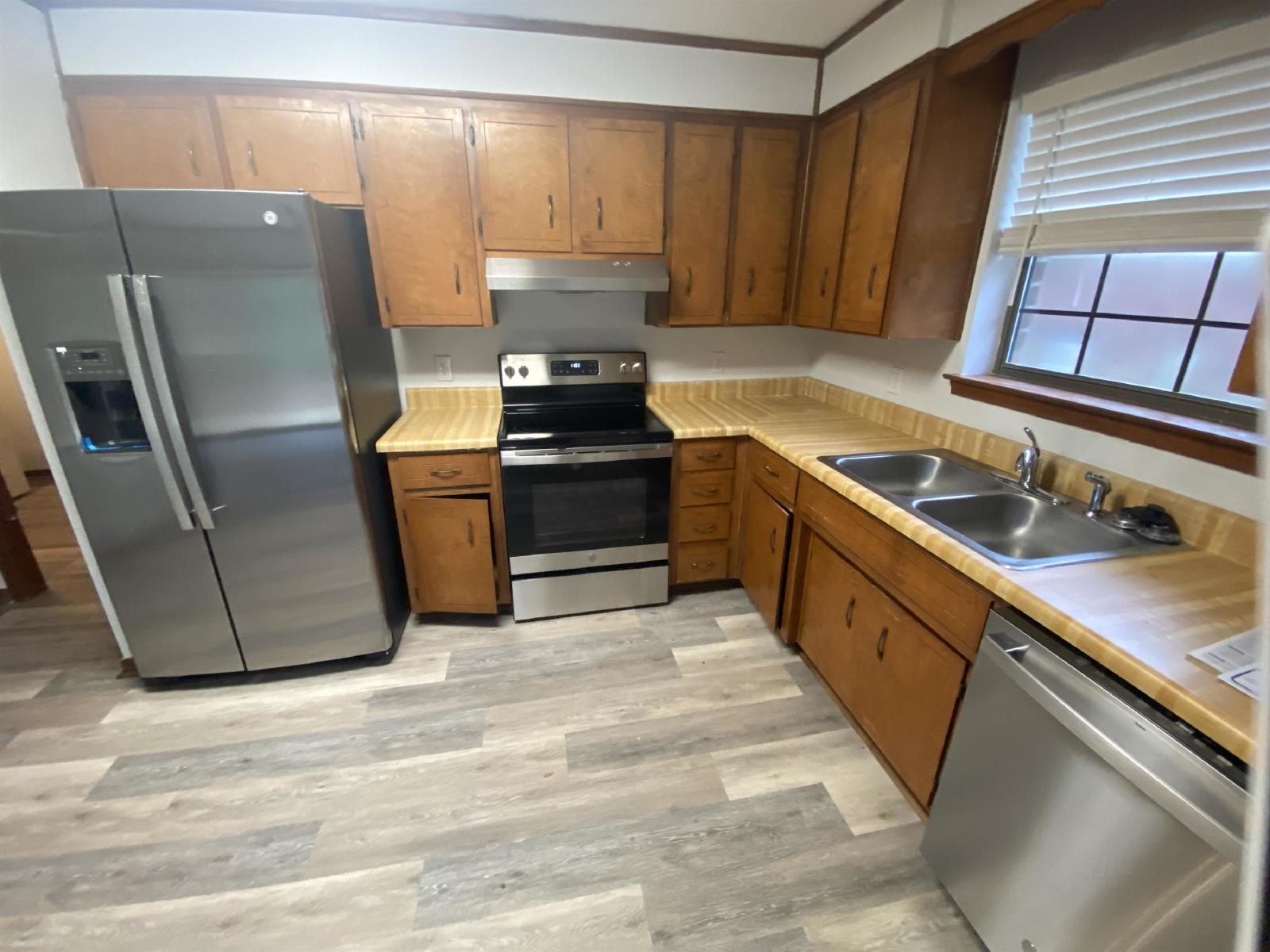 Newley painted three bedroom 2 full bath house on Tippin Ave. The house is located on a dead end road Large 2 car garage. New LVP flooring throughout. large great room. Central heat/ac. ready to move into. large finished open porch Newer stainles fridge, dishwasher and stove. Brick fireplace in great room This rental includes lawn service