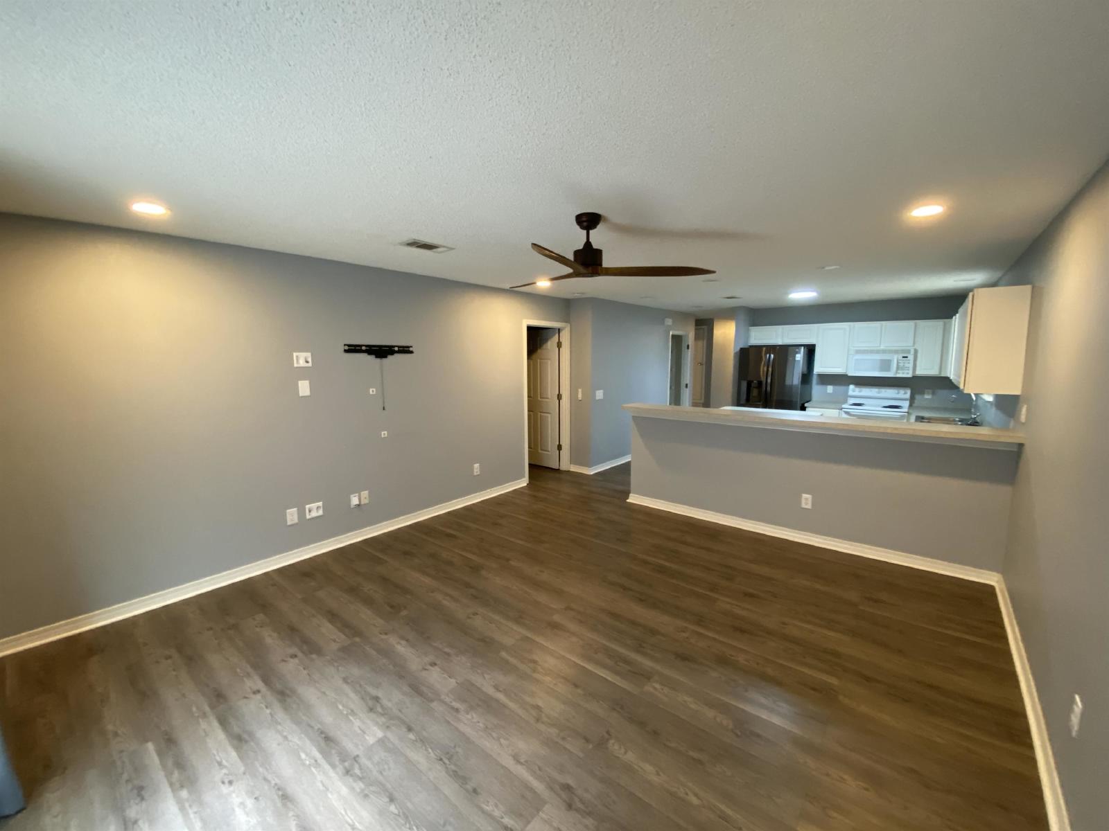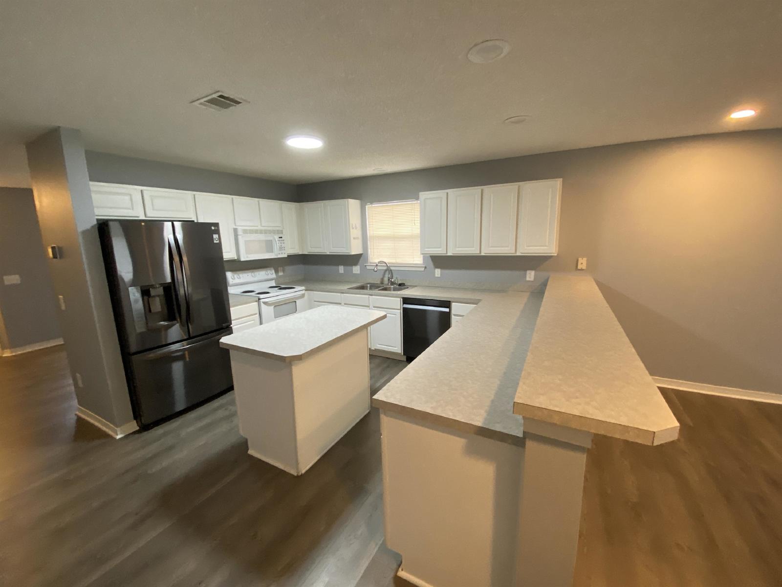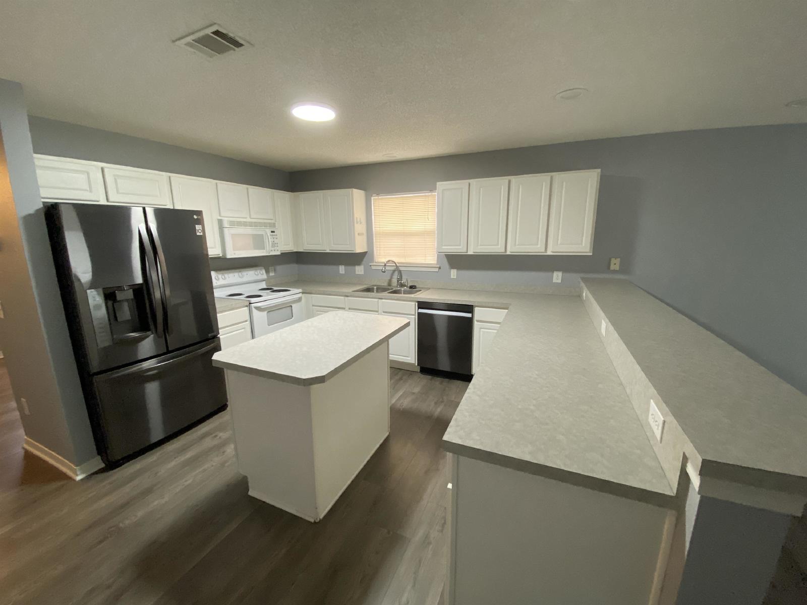 Beautiful Patio Home!! This 2 bedroom 2 bath home has an open floor plan with a large living area that is open to the kitchen. This home has been recently upgraded to include vinyl wood look flooring throughout, Recessed lighting, painting and upgraded appliances. The kitchen features a large center island, plenty of cabinet and counter space, a breakfast bar and a pantry for additional storage. There is a spacious master bedroom with a nice large window for natural light. The master bath has a single vanity and a garden tub/shower combo. the 2nd bathroom is a full bath with a single vanity and a tub/shower combo. There is a utility room close to the bathroom with a washer/dryer connection. Charming 2nd bedroom is spacious. The exterior has an open patio, yard building and 1 car garage. Pet accepted if approved by owner and all pet fees and pet rent paid. Move-In Fee $250 Per Household and $50 Lease Signing Fee Per Tenant.