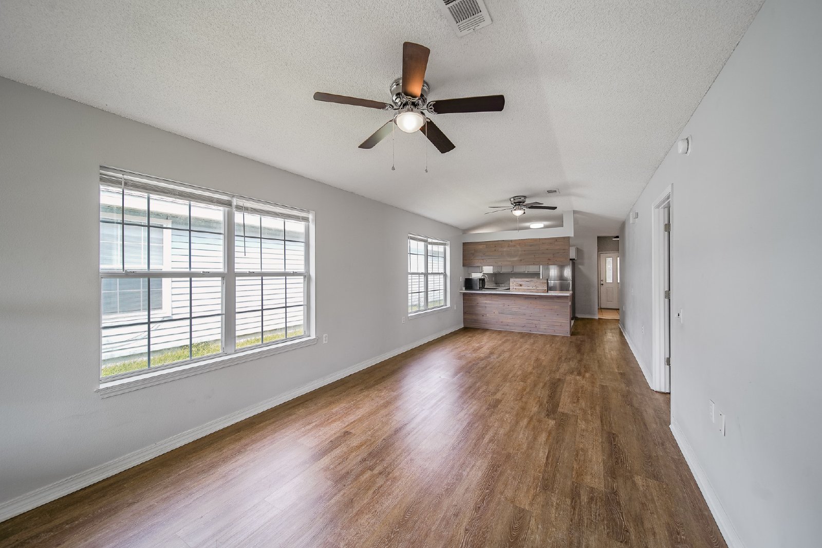 Discover your dream home in the charming Springfield Subdivision! This stunning, like-new three-bedroom, two-bath residence boasts an inviting atmosphere and modern amenities designed for comfortable living. Enjoy the sleek look of LVP flooring throughout, ensuring easy maintenance without any carpet. Each room is equipped with ceiling fans for optimal airflow, complemented by central heat and air for year-round comfort.