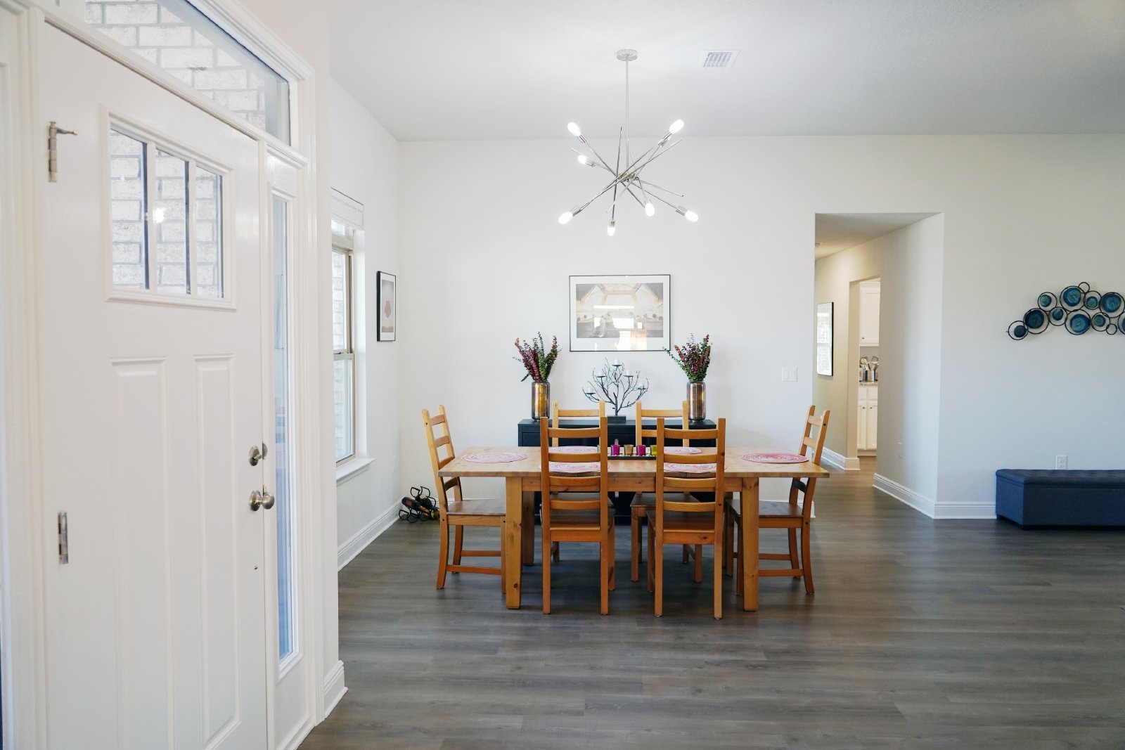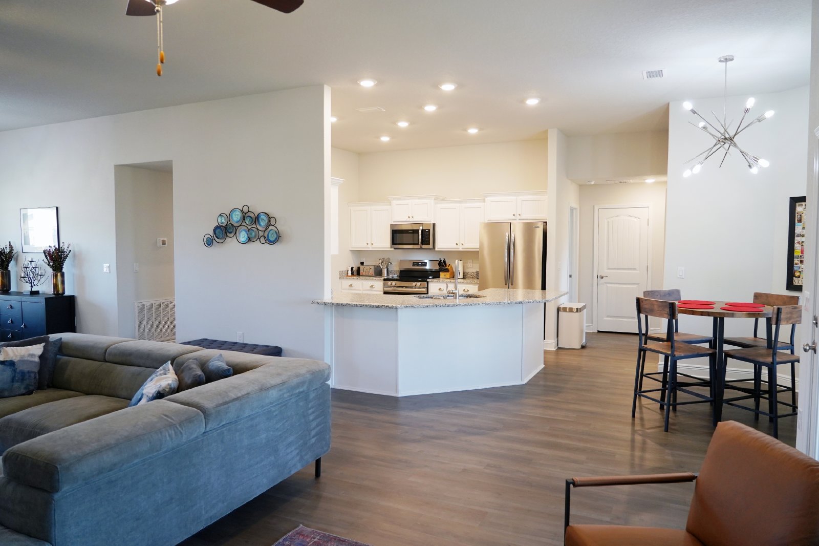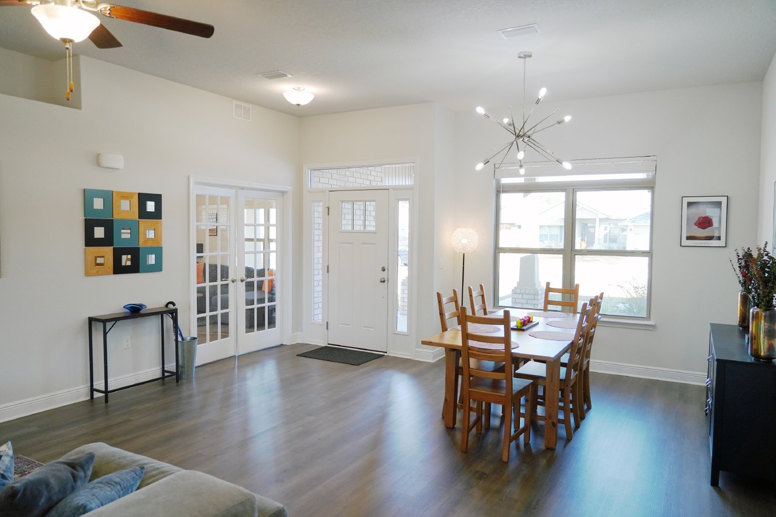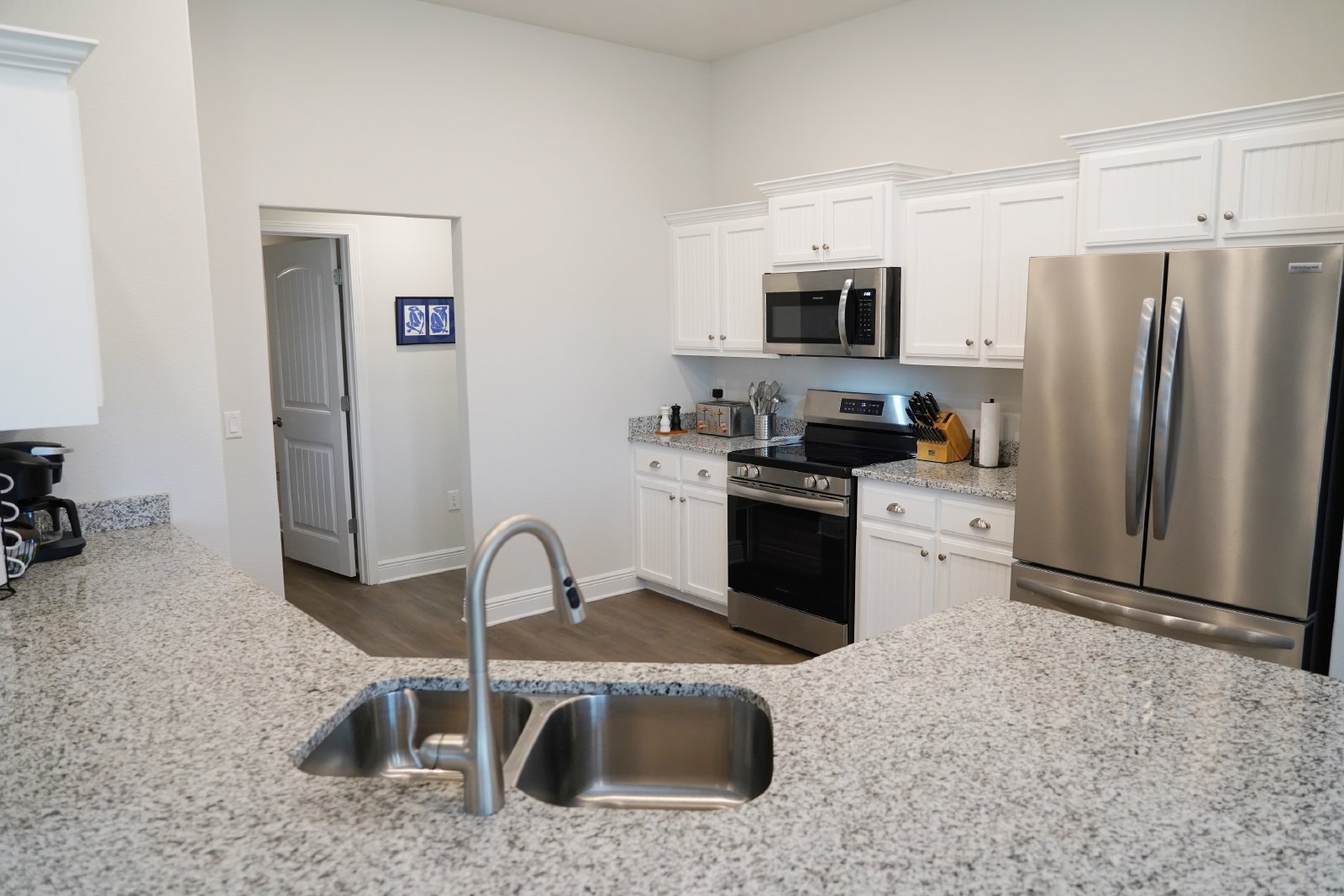Beautiful 2502 square ft house with 4 bedroom and 3 full baths. Built in 2004. Popular split bedroom design features a living room with French doors. The family room has a door leading to the covered lanai. The kitchen has stunning granite countertops with a counter height bar. White Cape Cod custom cabinets with down molding and stainless steel appliances. The master bedroom has a garden tub with a separate shower, double vanities with granite countertops. Large walk-in closets with lots of room. The second bathroom opens into the covered lanai with a linen closet, shower/tub combo.The third bathroom and a guest bedroom on a separate hallway that is perfect for guests. Beautiful LVP flooring is in the main living area fro easy care. This house is total electric. Call agent for showings