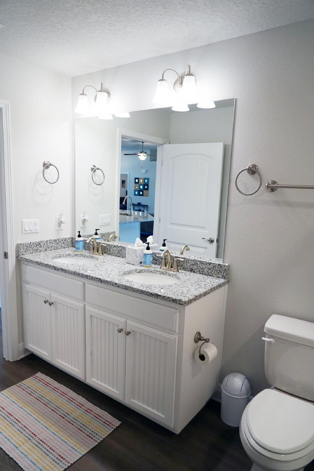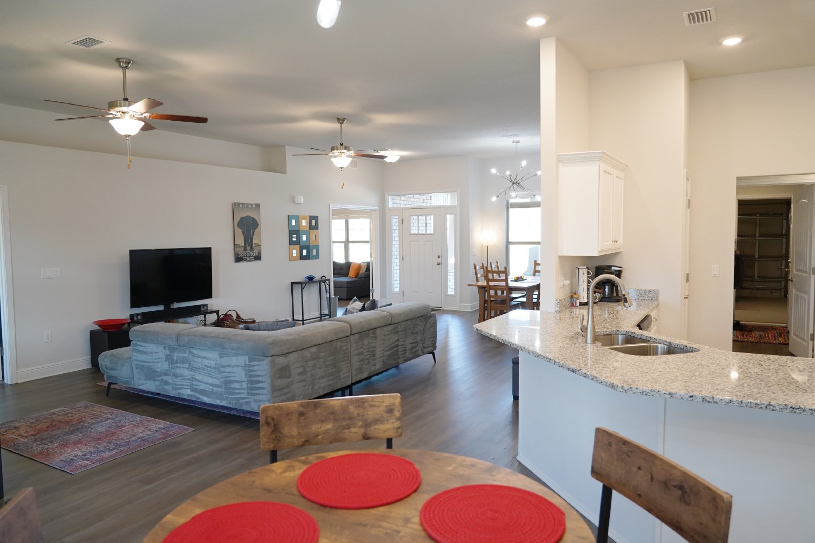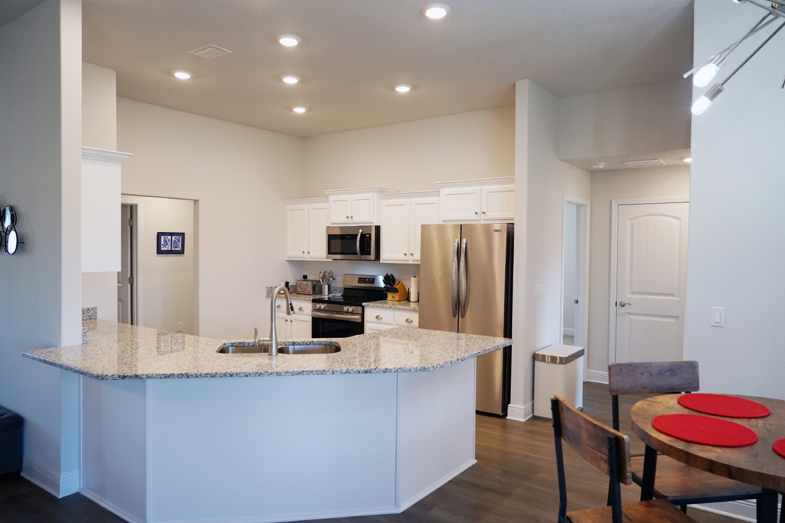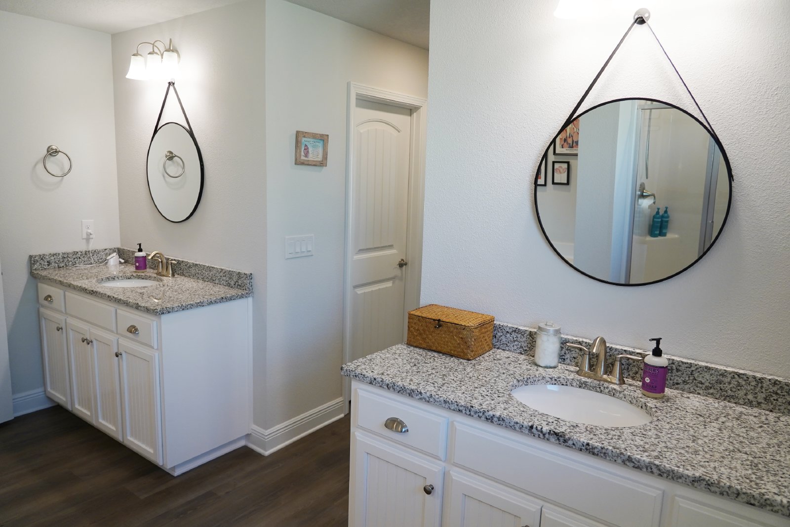 Beautiful 2502 square ft house with 4 bedroom and 3 full baths. Built in 2004. Popular split bedroom design features a living room with French doors. The family room has a door leading to the covered lanai. The kitchen has stunning granite countertops with a counter height bar. White Cape Cod custom cabinets with down molding and stainless steel appliances. The master bedroom has a garden tub with a separate shower, double vanities with granite countertops. Large walk-in closets with lots of room. The second bathroom opens into the covered lanai with a linen closet, shower/tub combo.The third bathroom and a guest bedroom on a separate hallway that is perfect for guests. Beautiful LVP flooring is in the main living area fro easy care. This house is total electric. Call agent for showings