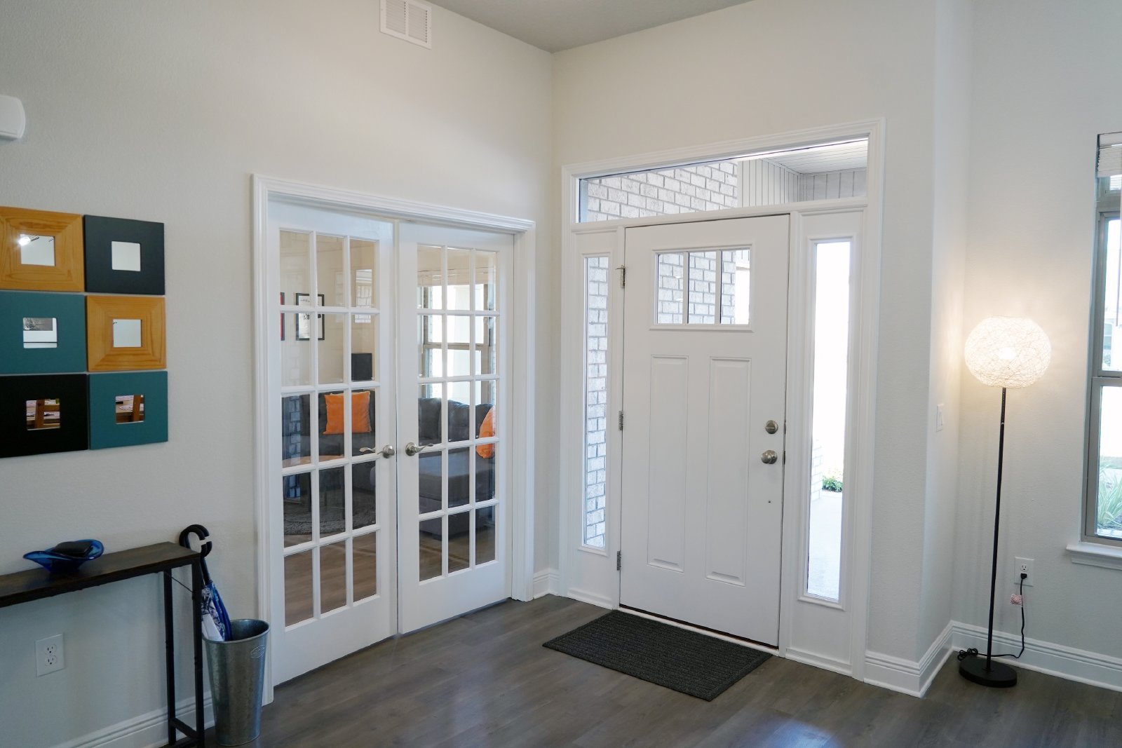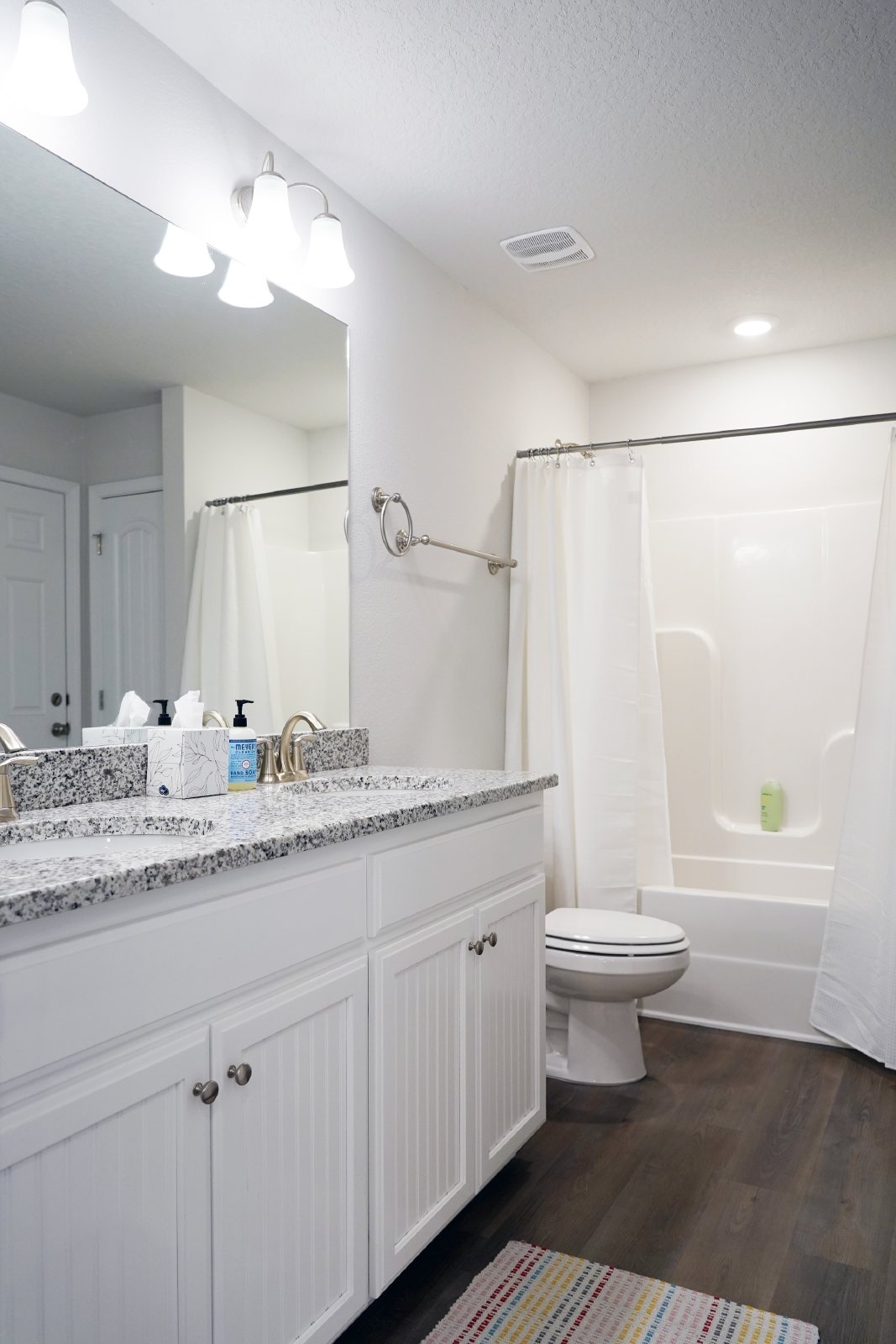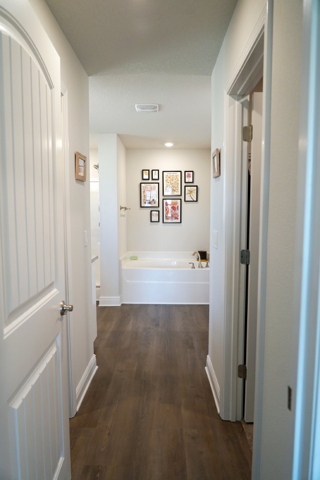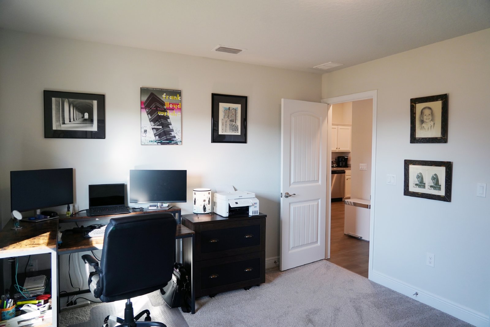 Beautiful 2502 square ft house with 4 bedroom and 3 full baths. Built in 2004. Popular split bedroom design features a living room with French doors. The family room has a door leading to the covered lanai. The kitchen has stunning granite countertops with a counter height bar. White Cape Cod custom cabinets with down molding and stainless steel appliances. The master bedroom has a garden tub with a separate shower, double vanities with granite countertops. Large walk-in closets with lots of room. The second bathroom opens into the covered lanai with a linen closet, shower/tub combo.The third bathroom and a guest bedroom on a separate hallway that is perfect for guests. Beautiful LVP flooring is in the main living area fro easy care. This house is total electric. Call agent for showings
