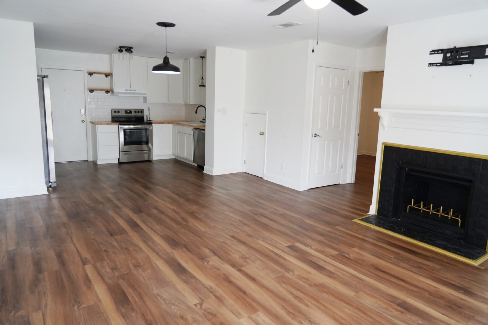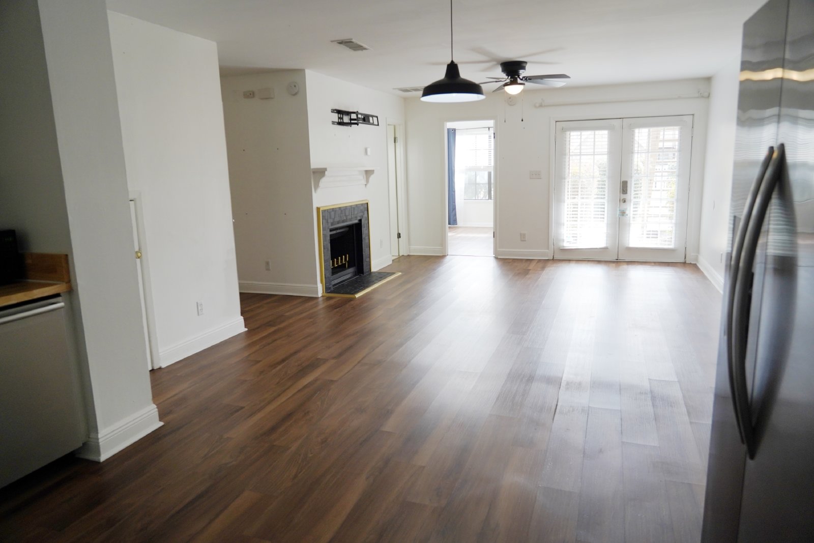 Discover your dream home in this beautiful two-bedroom, two-full-bath condo located in the desirable Plantation Place community. Step into a spacious great room, where a cozy fireplace adds warmth and ambiance, perfect for relaxing evenings. The charming kitchen boasts butcher block countertops, combining functionality with style. Enjoy the modern touch of newer LVP flooring that flows throughout the unit. With the convenience of a one-car garage, you'll have easy access to your vehicle. Ideally situated close to shopping and vibrant nightlife, this condo offers the perfect balance of comfort and convenience. Embrace the summer sun with access to a large outdoor swimming pool, ideal for cooling off on hot days. Don't miss your chance to make Unit 114 your new home! There is a $250 Move-In Fee per Household and a $50 Lease Signing Fee Per Tenant. Small dog okay with owner approval.